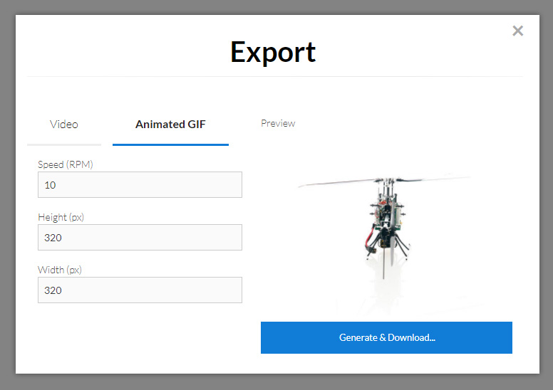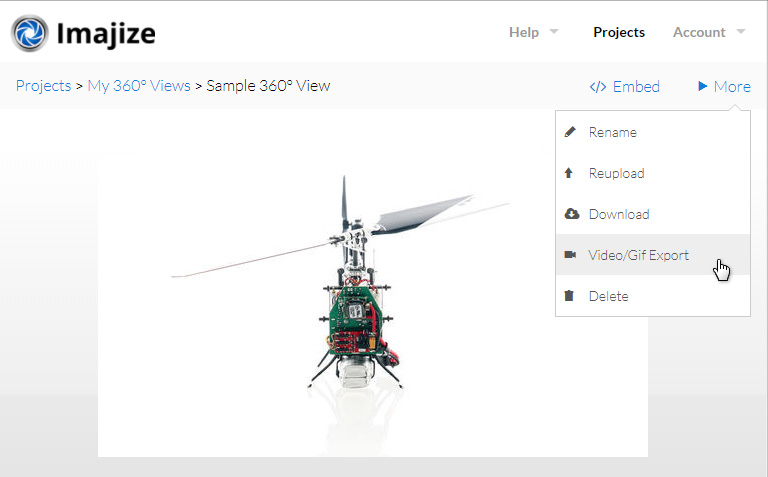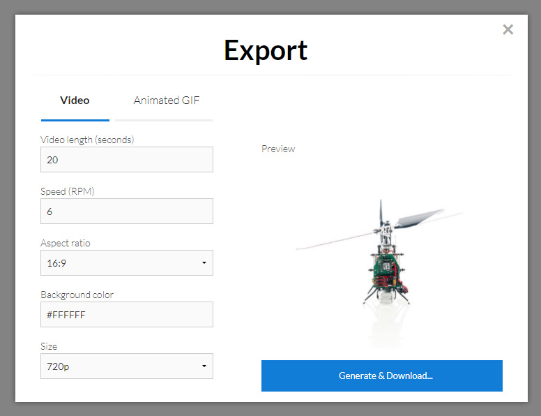 You can now export your 360 spins as animated gifs and high-resolution MP4 videos. A lot of services like Amazon, Facebook, and eBay don’t allow interactive images to be displayed in their closed environments.