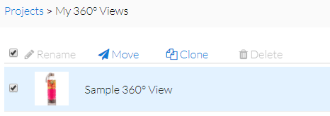 You can move and clone multiple 360 views from one project to another. To use the move feature, you need to have at least two projects created.